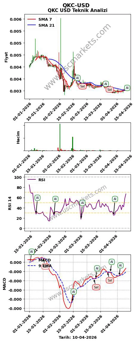 - QKC USD teknik analizi MACD -0.0 iken 'Al' sinyali vermiştir, şu an ki MACD değeri: -0.0