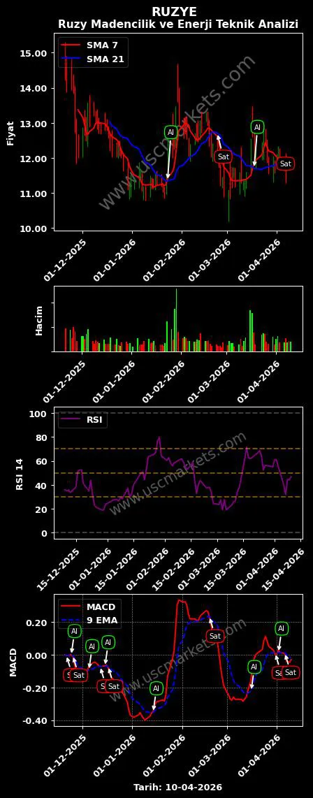 - RUZYE teknik analizi 14-periyotlu RSI göstergesi en son bir 'Sat' sinyali üretmiştir.