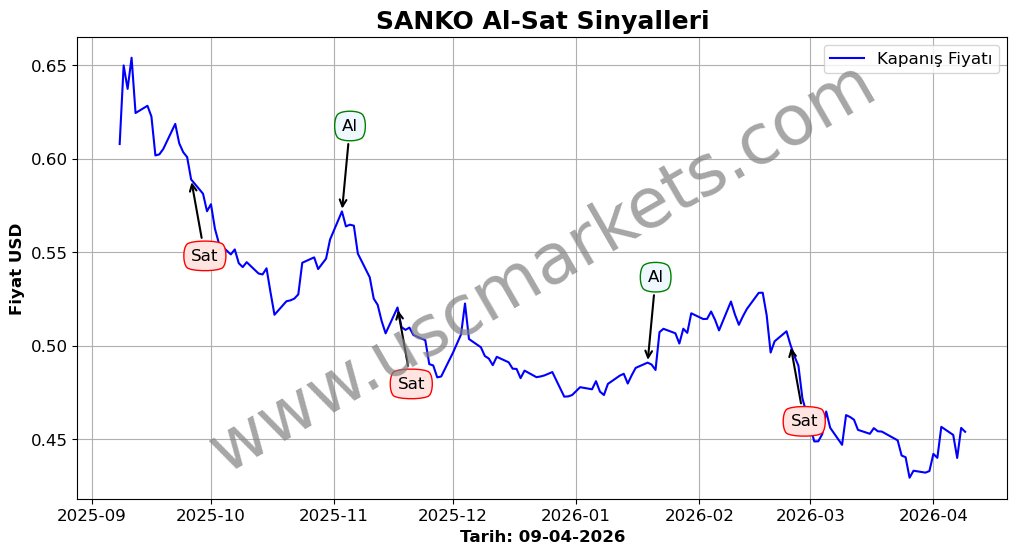 Son durum : 09-04-2026 tarihinde SANKO hissesi için 'Satış' sinyali verildi. Bu, hissenin değer kaybetme olasılığını gösterir.