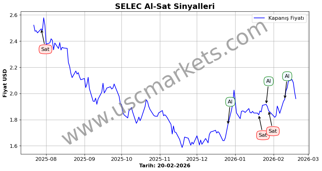 Son durum : 06-01-2026 tarihinde SELEC hissesi için 'Alış' sinyali verildi. Bu, hissenin değer kazanma olasılığını gösterir.