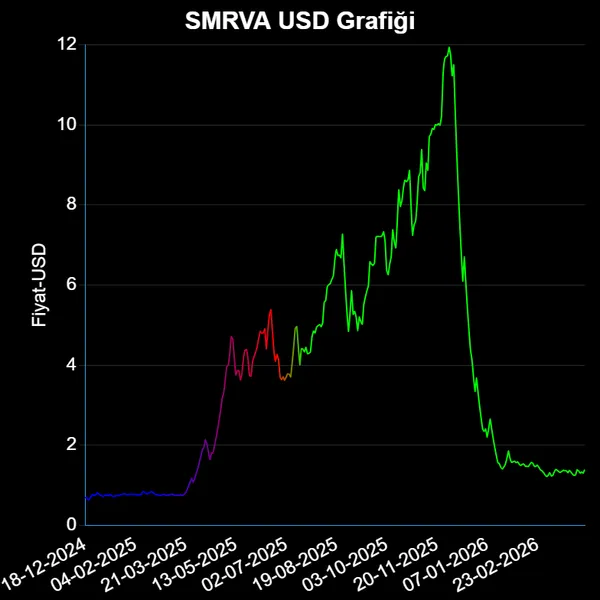 SMRVA hisse fiyatı geçen yıl 09-04-2025 tarihinde 1.89 USD iken, bir yıl içinde dolar cinsinden %-26.40 değer kaybederek, 1.391 USD'e düştü.