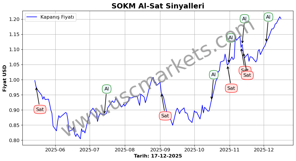 Son durum : 03-12-2025 tarihinde SOKM hissesi için 'Alış' sinyali verildi. Bu, hissenin değer kazanma olasılığını gösterir.
