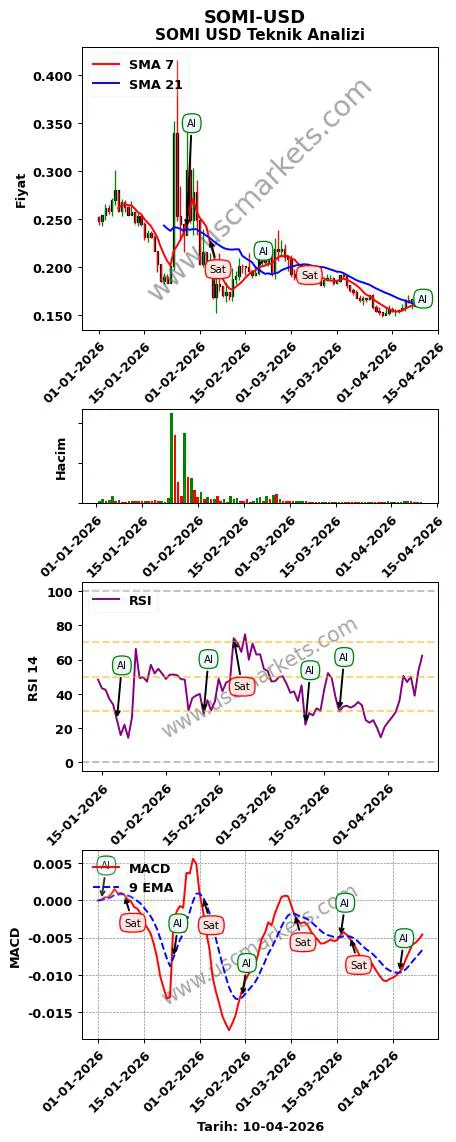 - SOMI-USD teknik analizi MACD göstergesi (9, 12, 26 parametreleri ile) en son bir 'Al' sinyali üretmiştir.