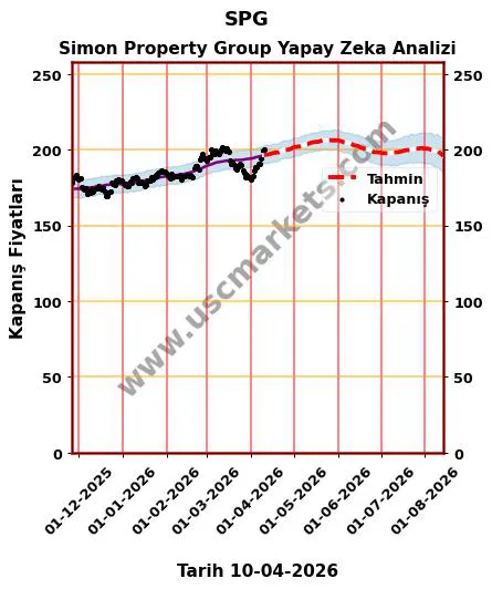 Yapay zeka yardımıyla hazırladığımız fiyat tahmin grafiği, SPG hisse yorumu ve Simon Property Group 2026 yıl sonu hedef fiyat tahminleri yukarıda detaylı olarak yer almaktadır.