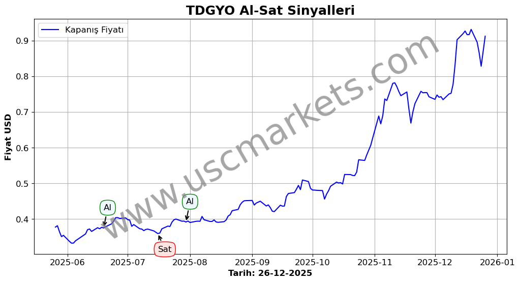 USC Markets 1. Algoritmanın TDGYO yorumlarını okudunuz. Al sat sinyallerini geliştirmeye devam edeceğiz.