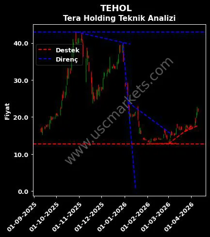 USC Markets TEHOL hisse yorumu ile ilgili teknik analiz sonuçlarına göre hesaplanan Tera Holding destek ve direnç fiyatları aşağıdaki tablodadır.