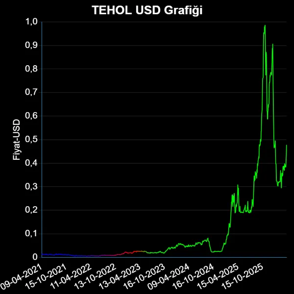 TEHOL hisse fiyatı geçen yıl 10-04-2025 tarihinde 0.255 USD iken, bir yıl içinde dolar cinsinden %92.94 değer kazanarak, 0.492 USD'e yükseldi.