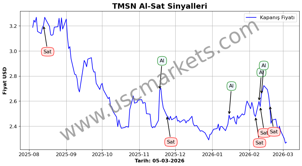 Son durum : 17-02-2026 tarihinde TMSN hissesi için 'Satış' sinyali verildi. Bu, hissenin değer kaybetme olasılığını gösterir.