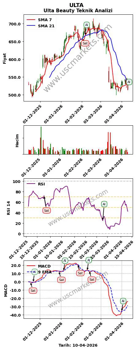 Teknik analiz ile ULTA hisse yorumu ve grafikleri aşağıdadır.