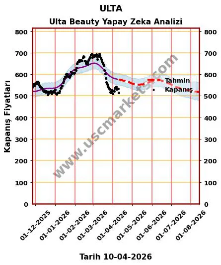 Yapay zeka yardımıyla hazırladığımız fiyat tahmin grafiği, ULTA hisse yorumu ve Ulta Beauty 2026 yıl sonu hedef fiyat tahminleri yukarıda detaylı olarak yer almaktadır.
