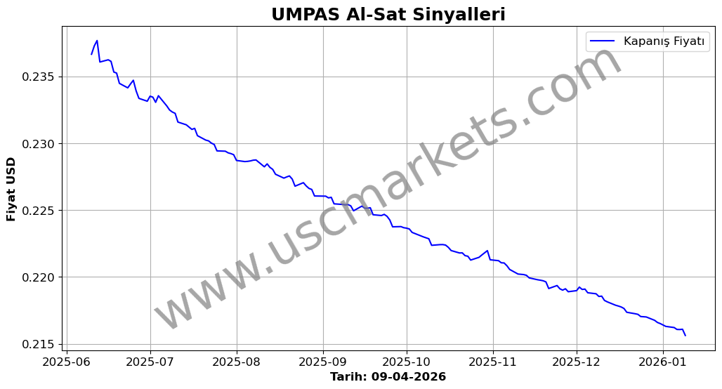 UMPAS hisse fiyatı son bir ayda dolar cinsinden %-1.37 değer kaybederek , 10-12-2025 tarihinde 0.219 Dolardan 0.216 Dolara düştü.