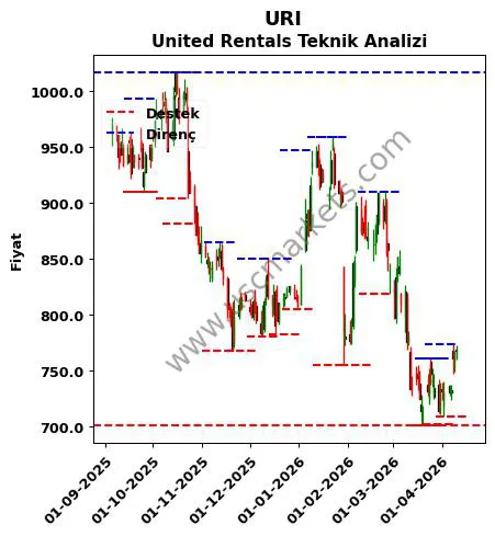 URI yorumu ile ilgili algoritmik analiz sonuçlarına göre belirlenen United Rentals destek ve direnç fiyatları aşağıdaki tablodadır.