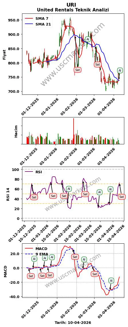 URI grafiği incelendiğinde, United Rentals teknik analizinde teknik göstergeler ile alım-satım sinyalleri üretilmiştir.Piyasada 100'den fazla teknik gösterge vardır. Her teknik gösterge farklı sinyaller üretebilir.