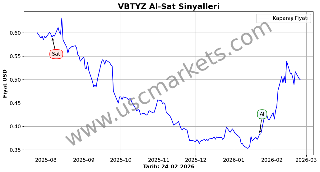 Son durum : 18-02-2026 tarihinde VBTYZ hissesi için 'Satış' sinyali verildi. Bu, hissenin değer kaybetme olasılığını gösterir.