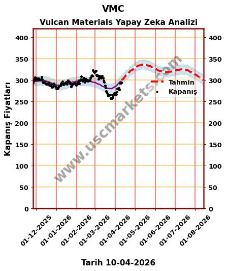Yapay zeka yardımıyla hazırladığımız fiyat tahmin grafiği, VMC hisse yorumu ve Vulcan Materials 2026 yıl sonu hedef fiyat tahminleri yukarıda detaylı olarak yer almaktadır.