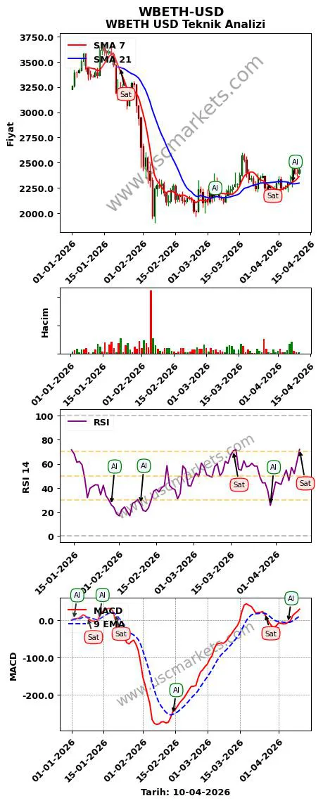 - WBETH USD teknik analizi MACD -5.794 iken 'Al' sinyali vermiştir, şu an ki MACD değeri: 25.597