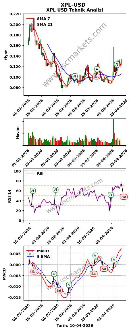 XPL-USD kripto parası teknik analiz XPL-USD yorumları aşağıdadır.- XPL-USD teknik analizi MACD göstergesi (9, 12, 26 parametreleri ile) en son bir 'Al' sinyali üretmiştir.