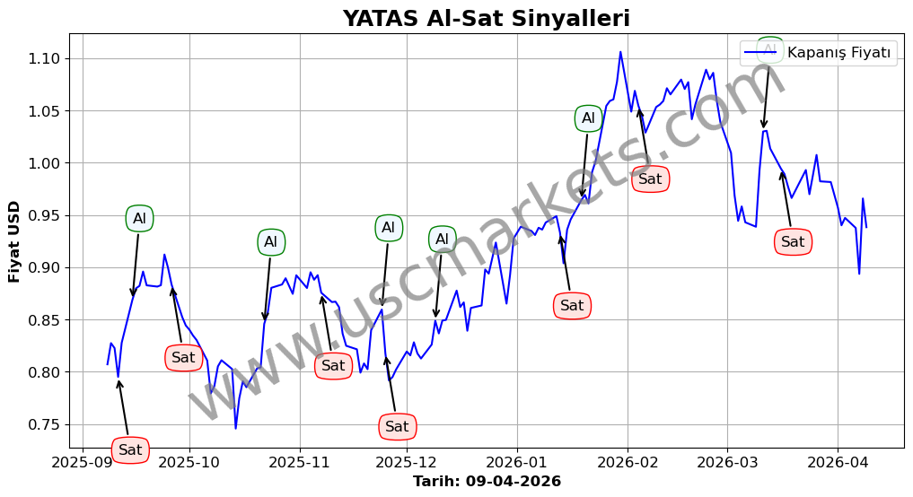 Son durum : 08-04-2026 tarihinde YATAS hissesi için 'Satış' sinyali verildi. Bu, hissenin değer kaybetme olasılığını gösterir.